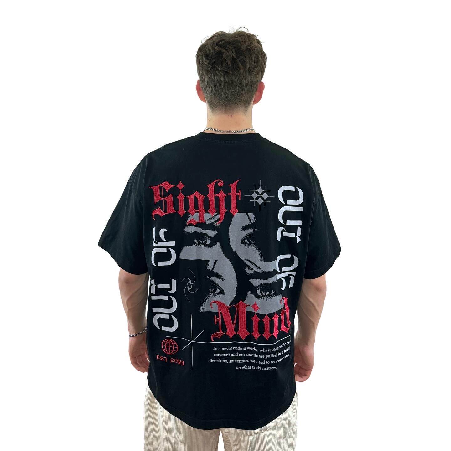 Introducing the SIGHT & MIND Oversized T-Shirt, where style meets comfort in perfect harmony. Crafted with high quality and breathable fabrics, the SIGHT AND MIND Oversized t-shirt features a boxy, relaxed fit that allows you to move with ease while embracing the street wear aesthetic. Its thought-provoking design showcases a fusion of art and philosophy, making you the centre of attention for those who appreciate the beauty of visual expression and deep thinking. Whether you’re out for a casual day or seeking to express your individuality, the SIGHT AND MIND Box Fit T-Shirt is your ideal choice.
